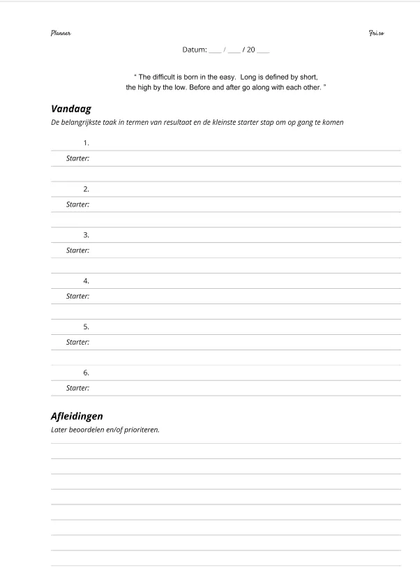 Download nu je gratis printbare PDF en print hem uit om te beginnen me je dagen effectief te plannen.
