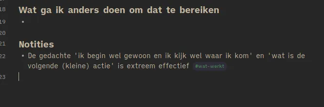 Hier hou ik ruimte voor inzichten. Ik annoteer alles met tags, zodat alles minimaal één keer per maand na kan lopen en door kan nemen.